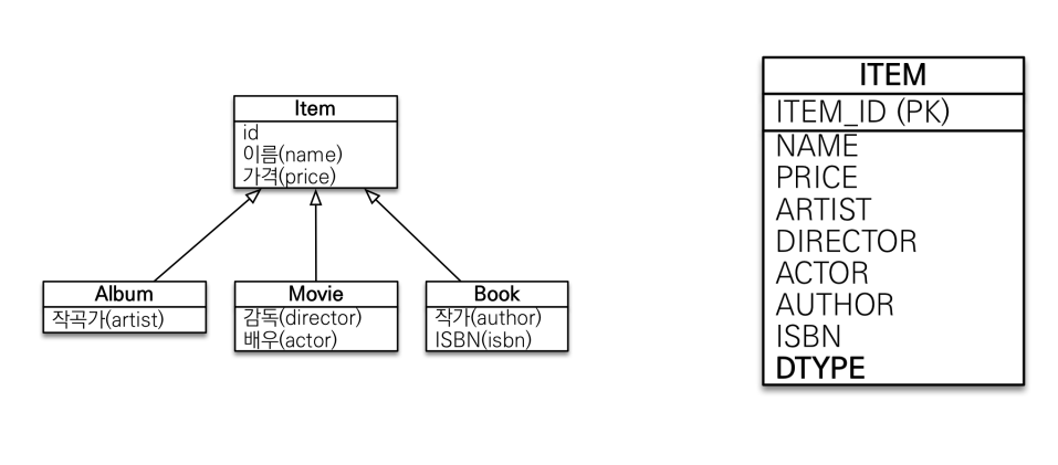 @Inheritance(strategy = InheritanceType.SINGLE_TABLE) //조인 전략과 여기만 바뀜