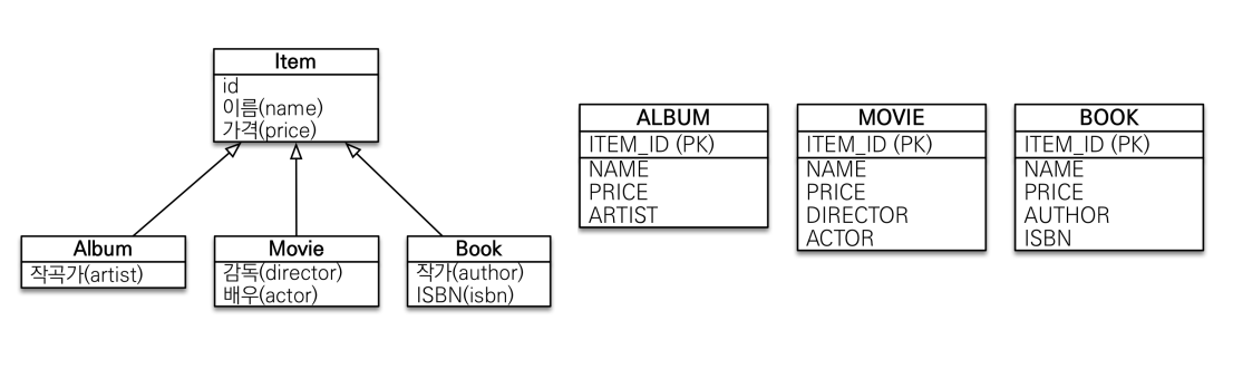 - TABLE_PER_CLASS : 구현 클래스마다 테이블 전략