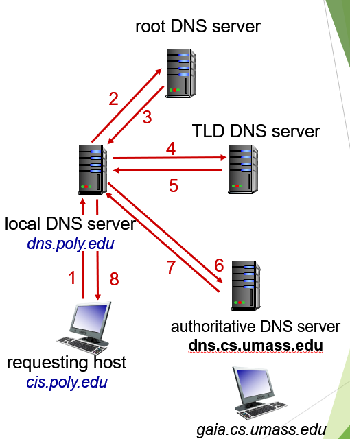 또한 cse.nyu.edu의 로컬 DNS 서버는 dns.nyu.edu이고 gaia.cs.umass.edu에 대한 책임 DNS 서버는 dns.umass.edu라고 가정하자.