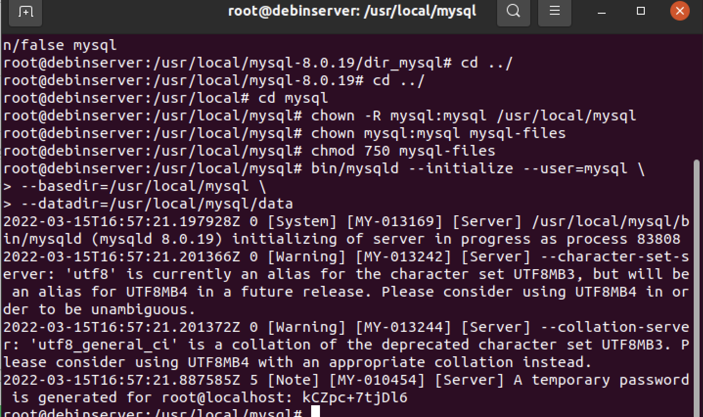 /usr/local/mysql# bin/mysqld --initialize --user=mysql \