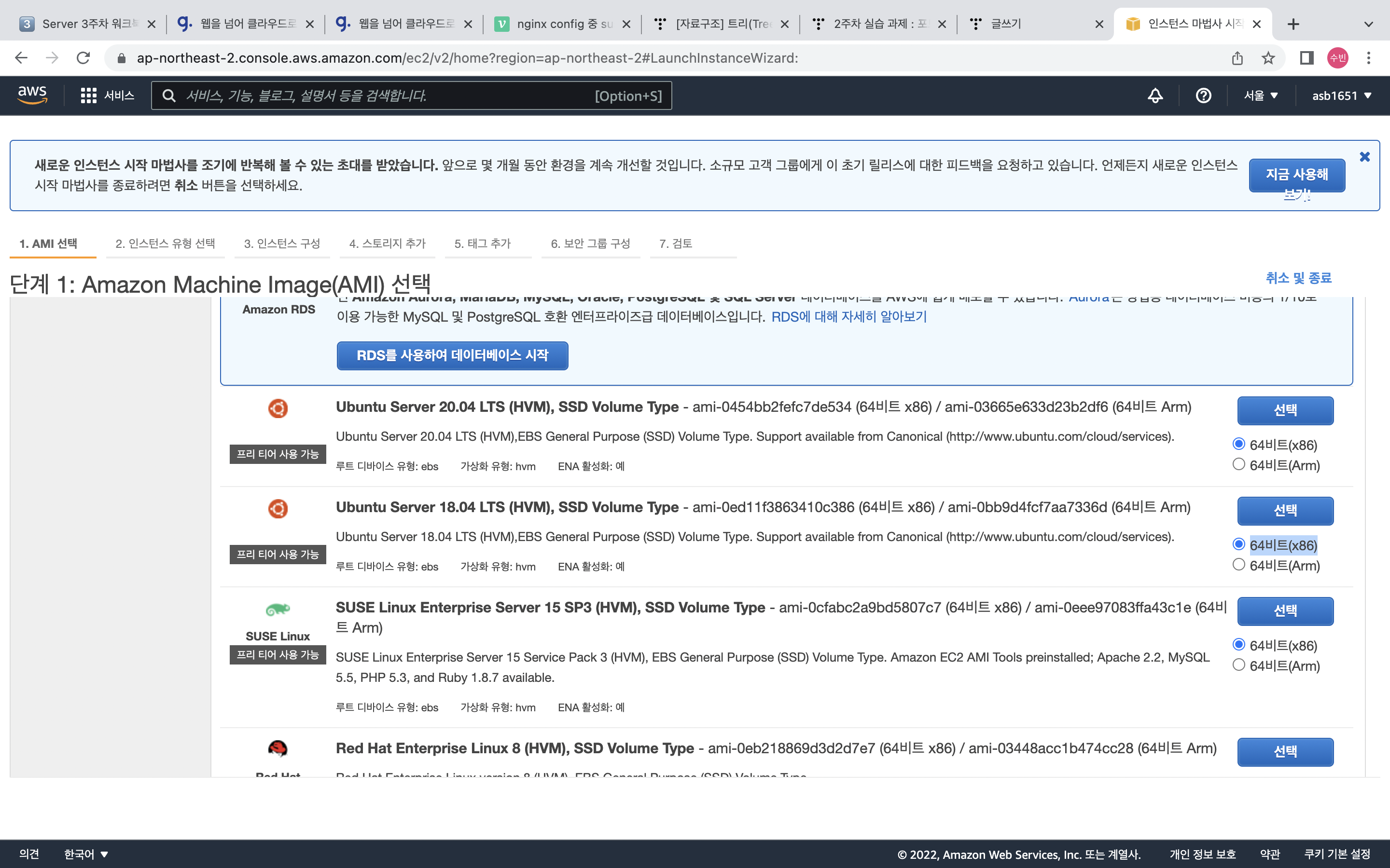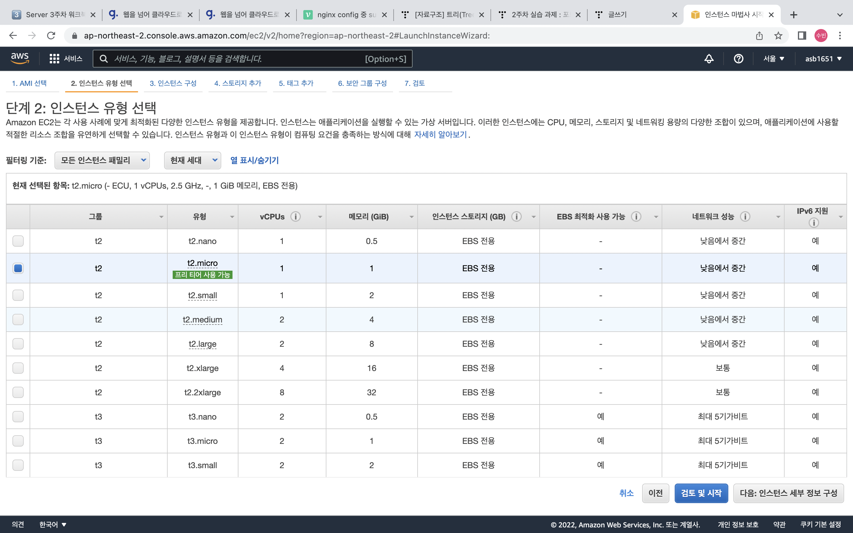 프리티어로 사용 가능한 인스턴스를 선택하자.