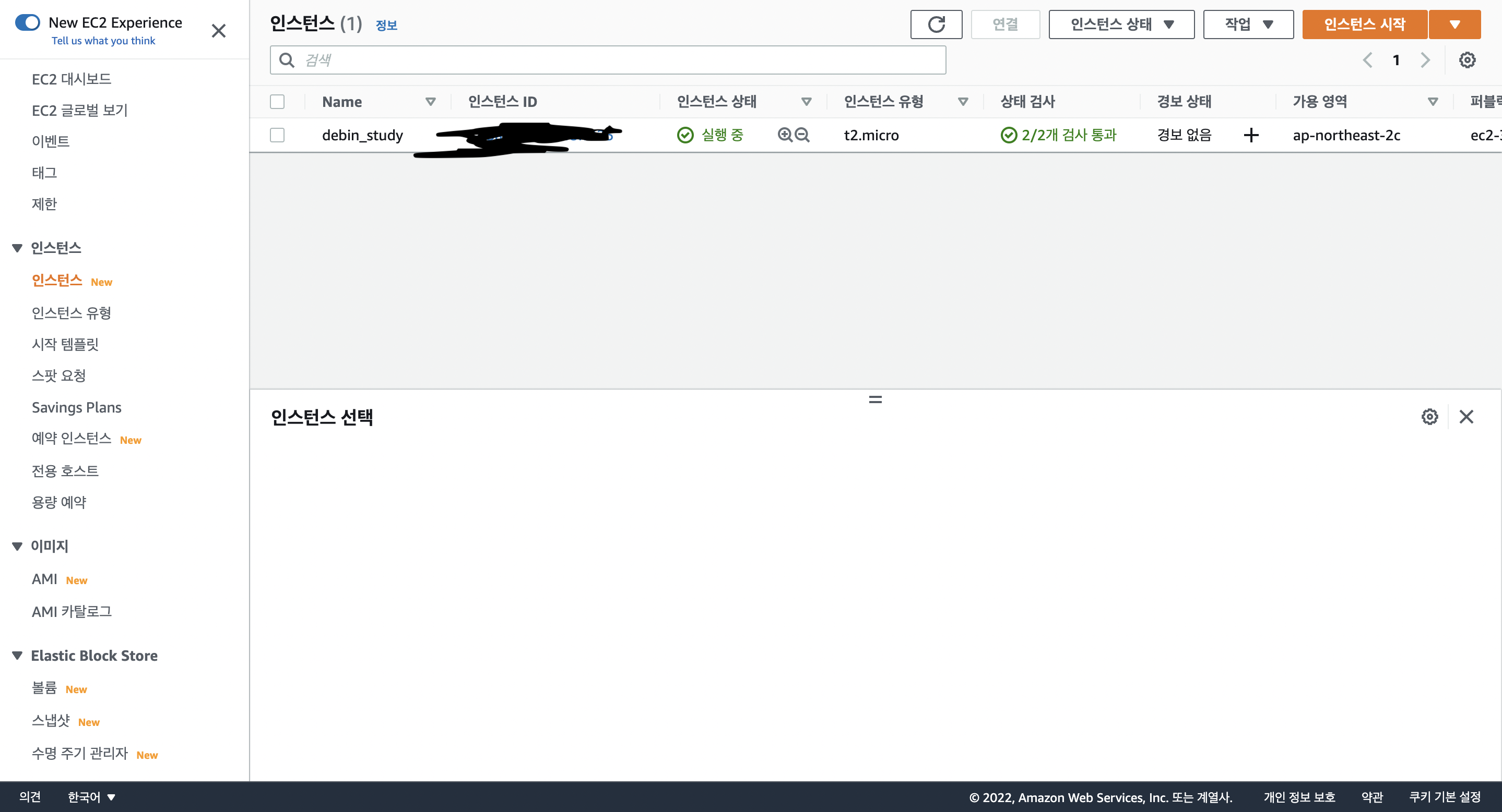 인스턴스가 잘 생성된 것을 확인할 수 있다. 이제 debin_study라고 이름을 정하자
