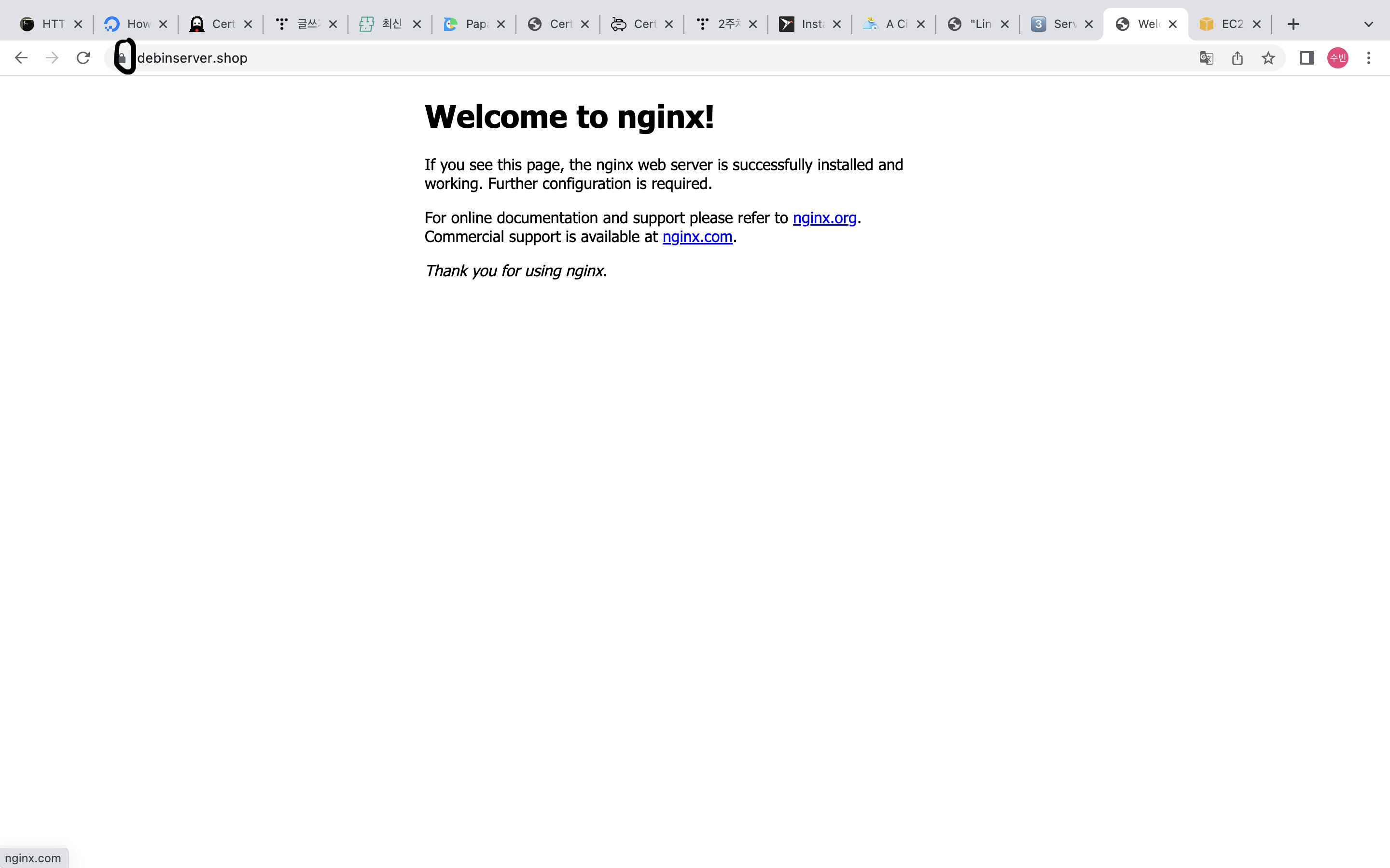 정상적으로 동작한다!!!!! 물론 서브 도메인에도 정상적으로 https가 잘 적용되었다.