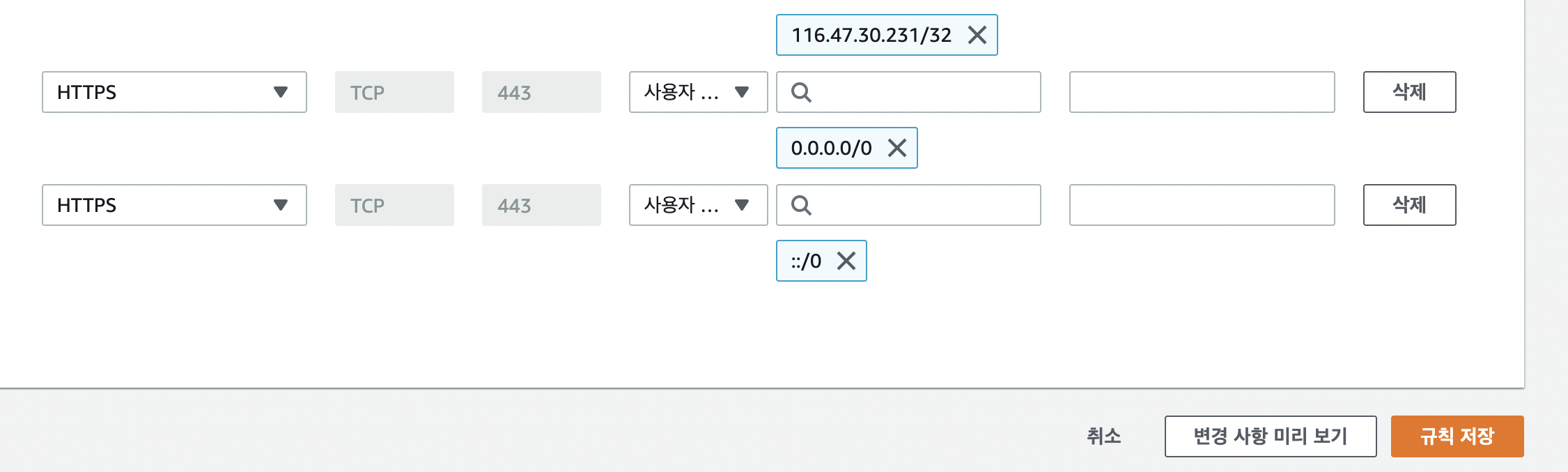 바로 우리 AWS Ec2 인스턴스 보안 그룹에 들어가서 임바운드 규칙을 수정해줘야 한다.