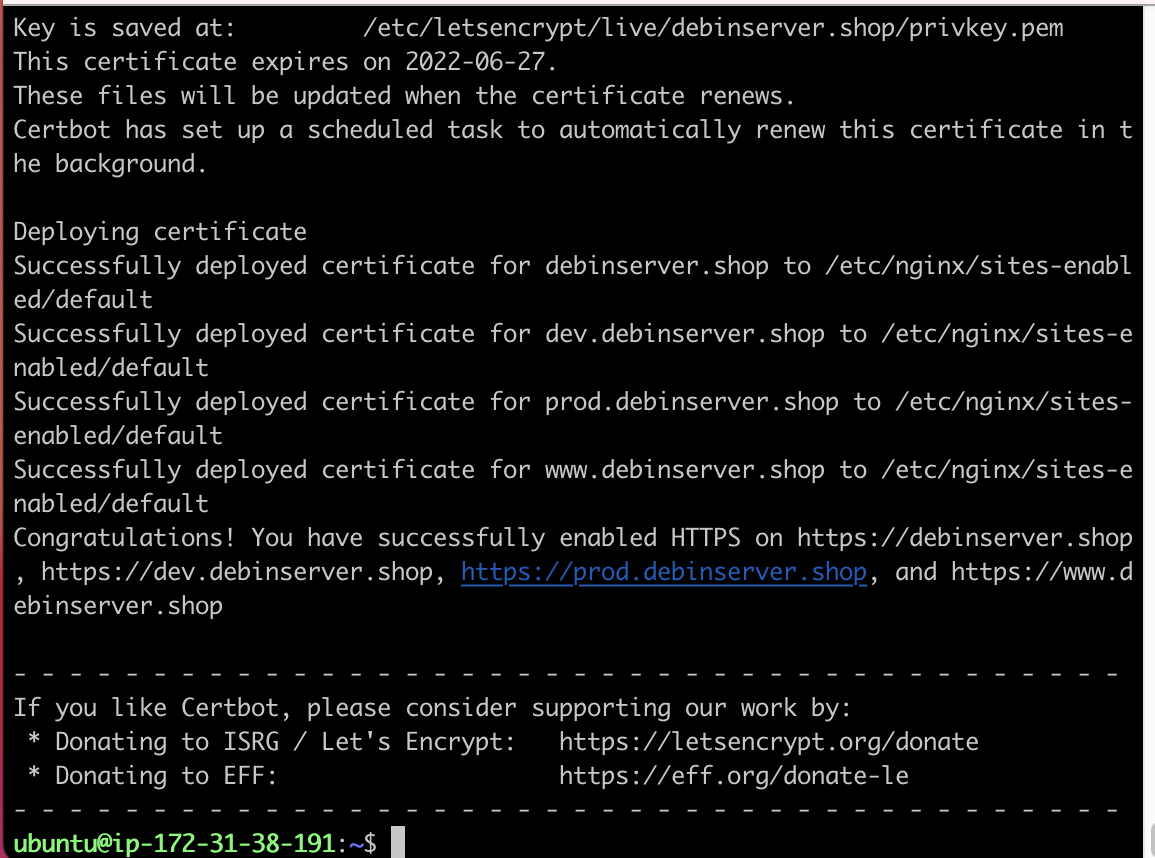 "이 명령을 실행하여 증명서를 취득하고 Certbot이 nginx 설정을 자동으로 편집하여 이를 처리하도록 하고, 한 번에 HTTPS 액세스를 켭니다."