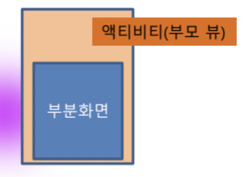 부분 화면 인플레이션은 LayoutInflater 클래스를 이용하여 동적으로 부분 화면(뷰)를 부모 뷰에 추가한다.