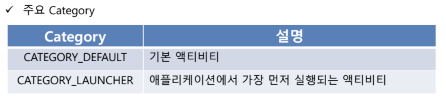 - 인텐트 필터는 인텐트 객체 내 정보(Action, Data, Category)를 기반으로 적절한 컴포넌트를 찾아 실행
