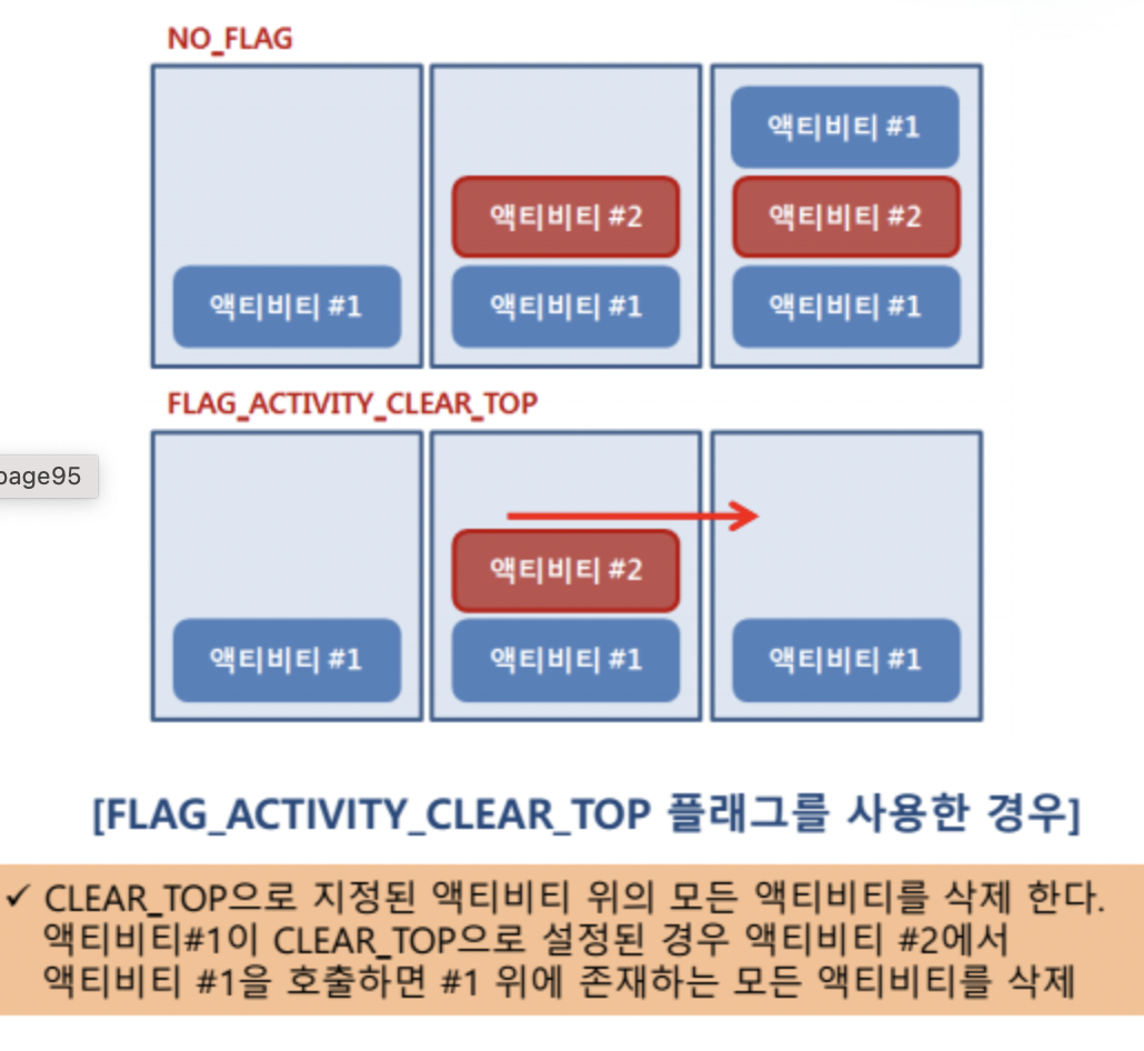 intent.setFlags(Intent.FLAG_ACTIVITY_SINGLE_TOP) //인텐트 플래그 설정