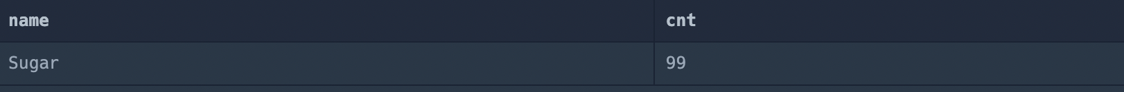 결과는 아래와 같다. 모든 name을 count 함수를 통해 집계한 것이다.