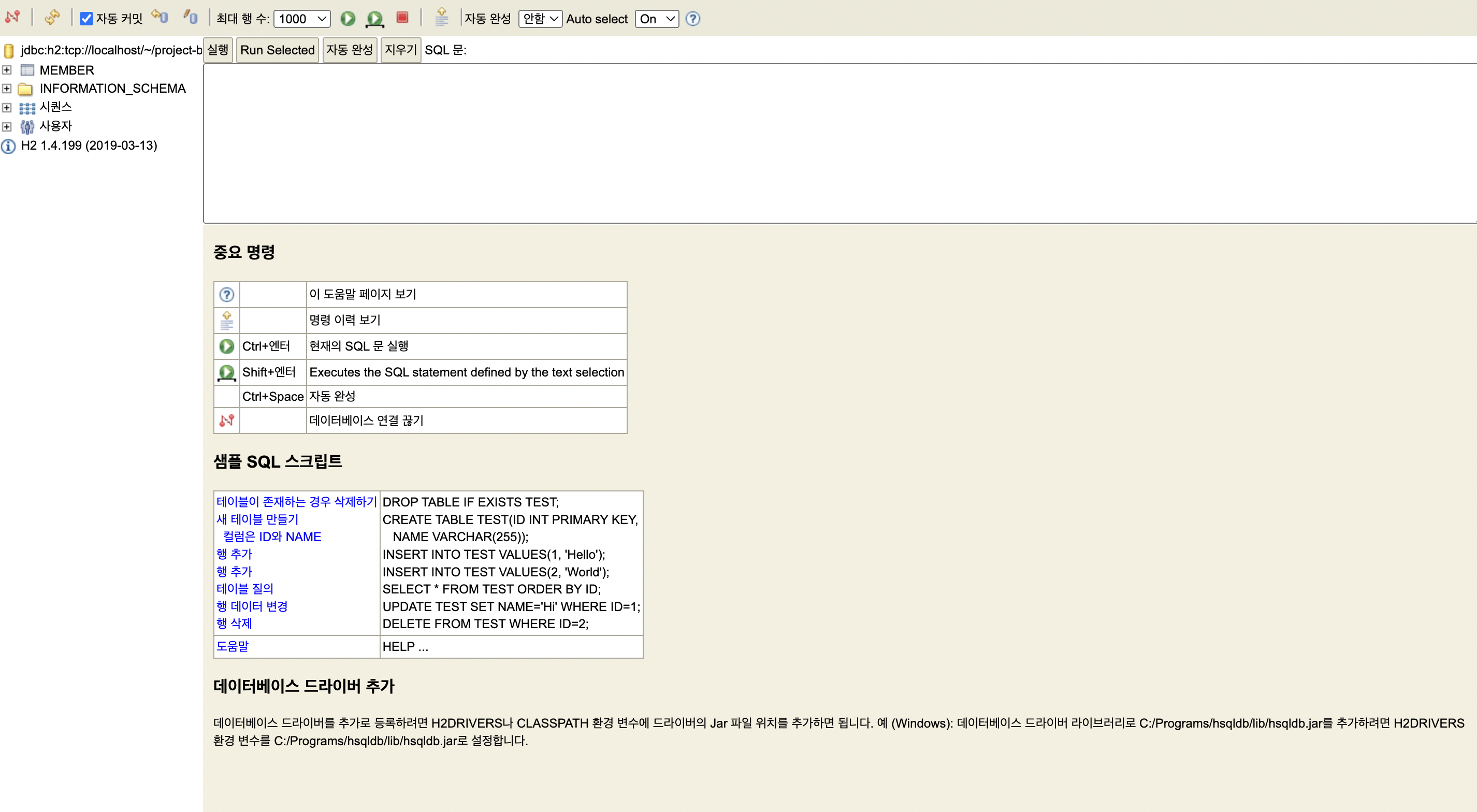 이제 H2 데이터베이스와 연결을 확인하고 마치자.