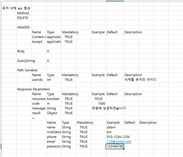 이렇게 유저 삭제 API 명세서 작성까지 마무리했다. 이제 코딩을 하면서 본인이 느낀점에 대해 적어보겠다.