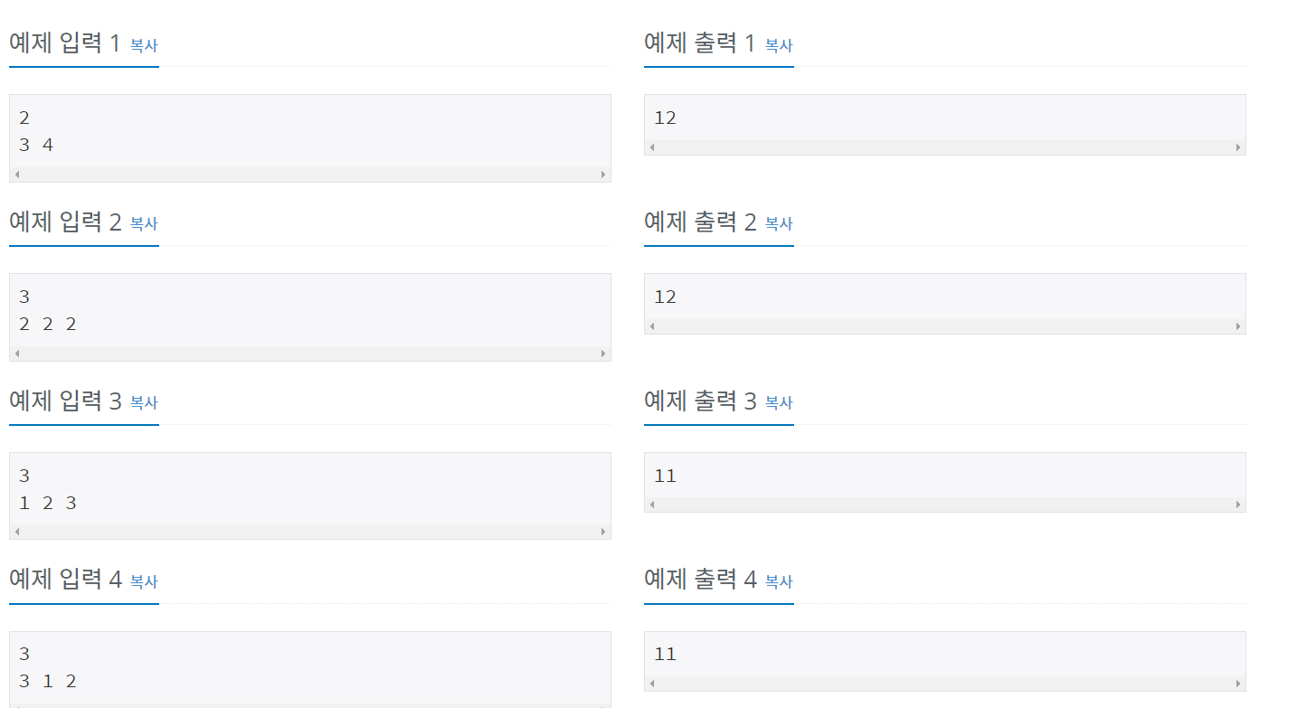 최댓값을 구하려면 큰 수들을 먼저 곱해서 점수를 넣고 더한 후 새로운 배열 요소로 집어넣어 최댓값을 구한다.