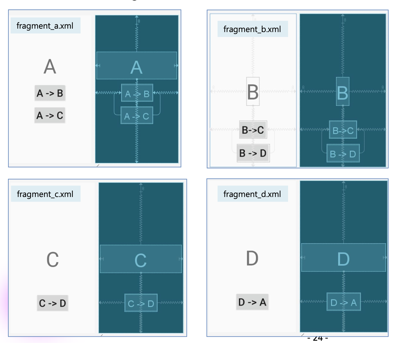 android:id="@+id/action_BFragment_to_DFragment"