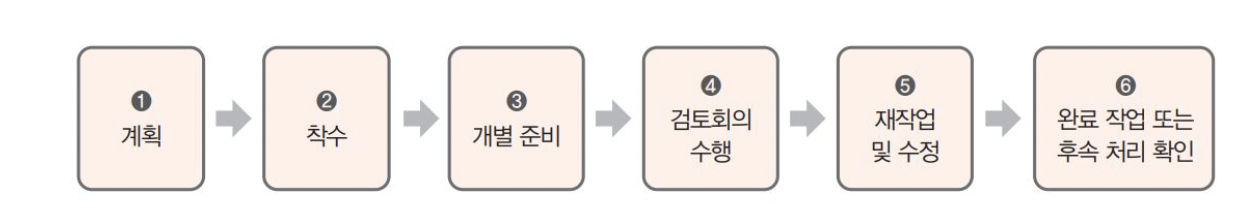 - 검토 회의와 소프트웨어 검사가 주로 이런 방식으로 수행된다.