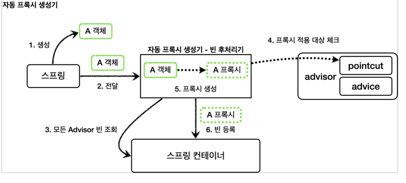 - 빈 후처리기는 이제 등록하지 않아도 된다. 스프링은 자동 프록시 생성기라는