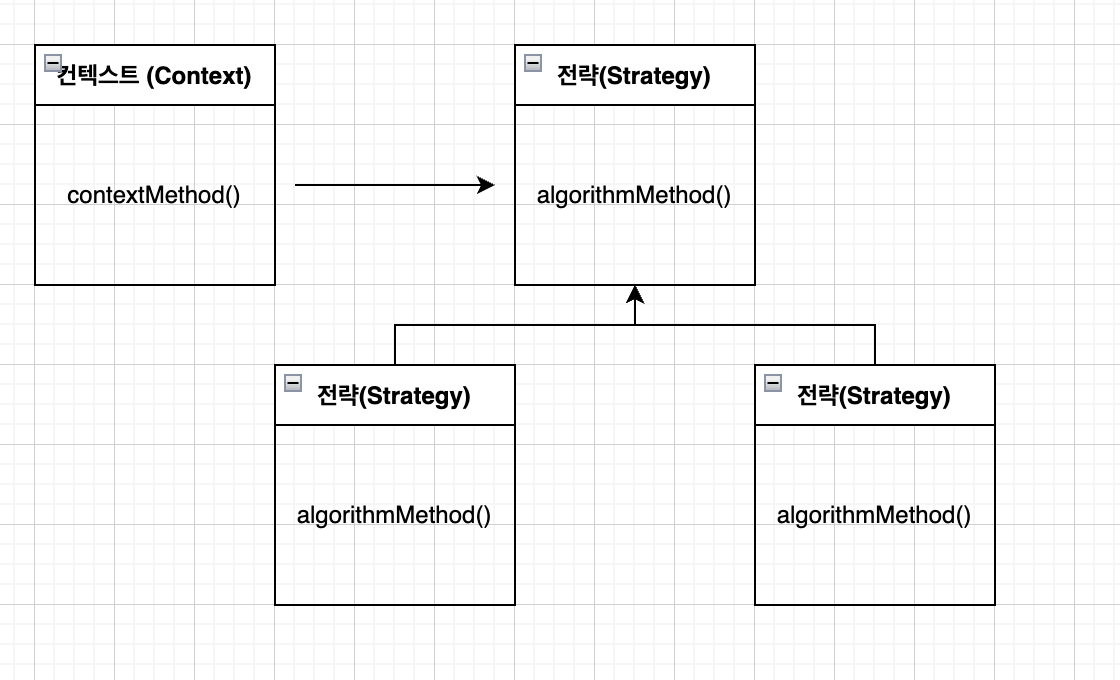 아래 그림은 전략 패턴의 구조를 나타낸다.