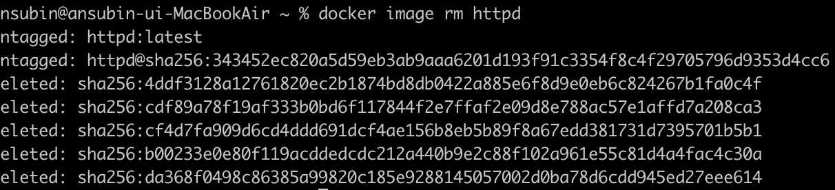이제 본격적으로 알아보자. 우리는 httpd (아파치) 이미지를 삭제할 것이다.
