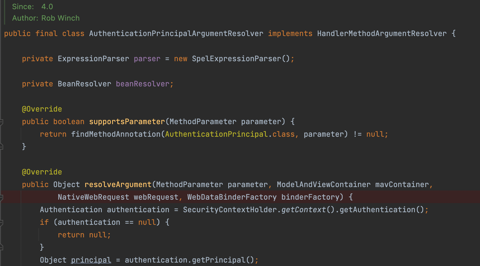 그랬더니 아래와 같은 클래스가 눈에 띄였다. AuthenticationPrincipalArgumentResolver!!!!