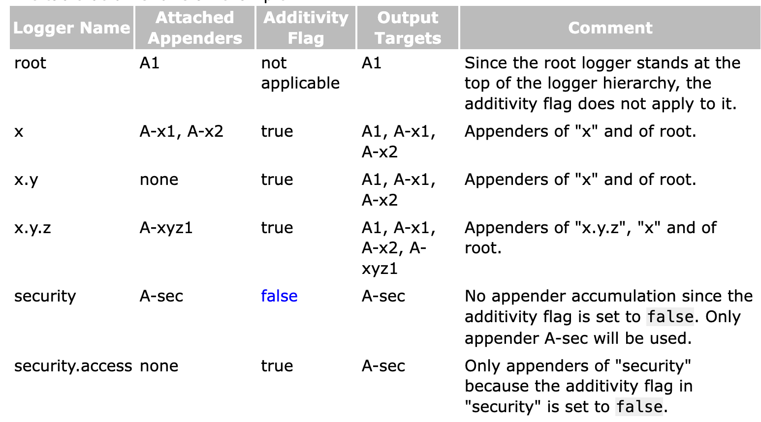 여기에서 중요한 개념인 Appender Additivity가 등장한다.