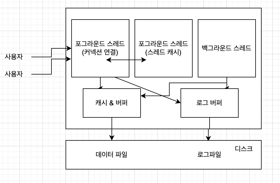 모두 중요하지만 가장 중요한 것은 로그 스레드와 버퍼의 데이터를 디스크로 내려쓰는 작업을 하는 쓰기 스레드다.