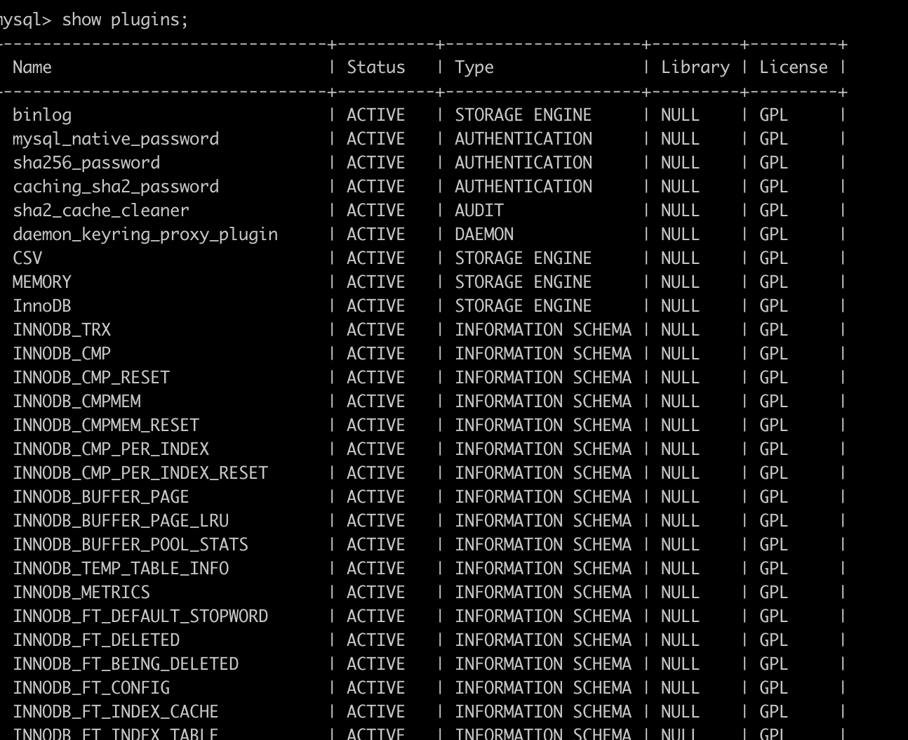 show plugins;
