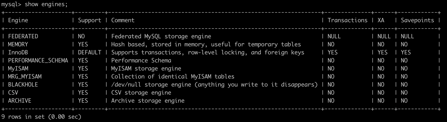 show engines;