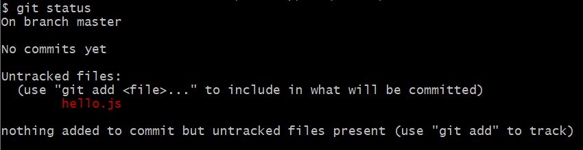 이제 다시 hello.js를 tracked 상태로 변경한다.
