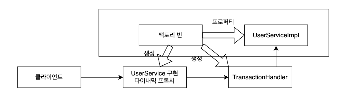 우리가 위에서 살펴본 UserServiceTx도 일종의 프록시며 UserServiceImpl은 타깃이다.
