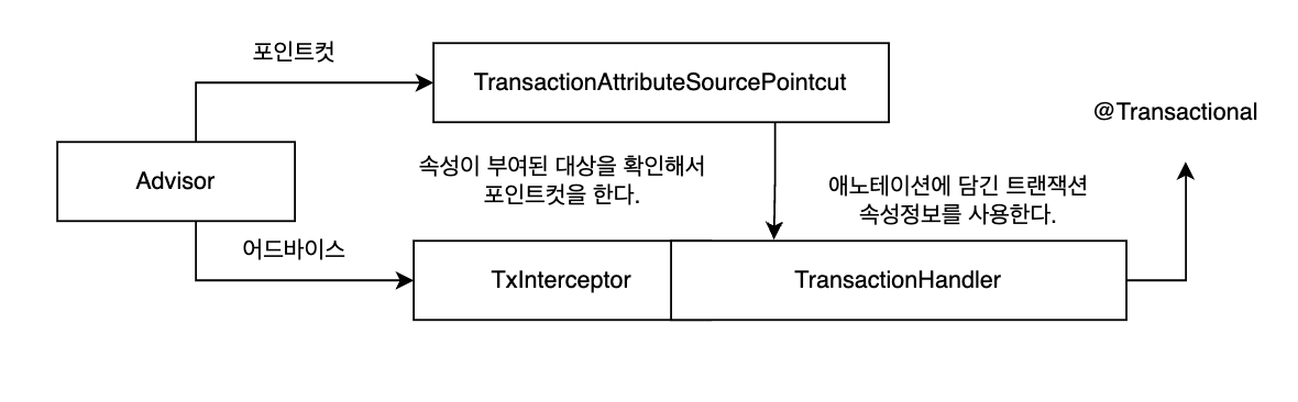 @Transactional 애노테이션의 엘리먼트에서 트랜잭션 속성을 가져오는 AnnotationTransactionAttributeSource를 사용한다.