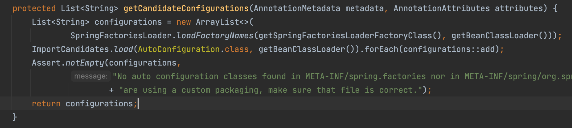 위 메서드를 우리의 실습에 대입해보면 여기서 아래 경로에 있는 파일을 찾아서 자동 구성을 지정할 클래스의 이름을 리턴할 수 있게 해준다.