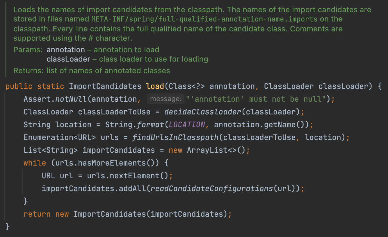 그럼 ImportCandidates 클래스의 정적 메서드 load가 보인다. 들어가서 살펴보자.