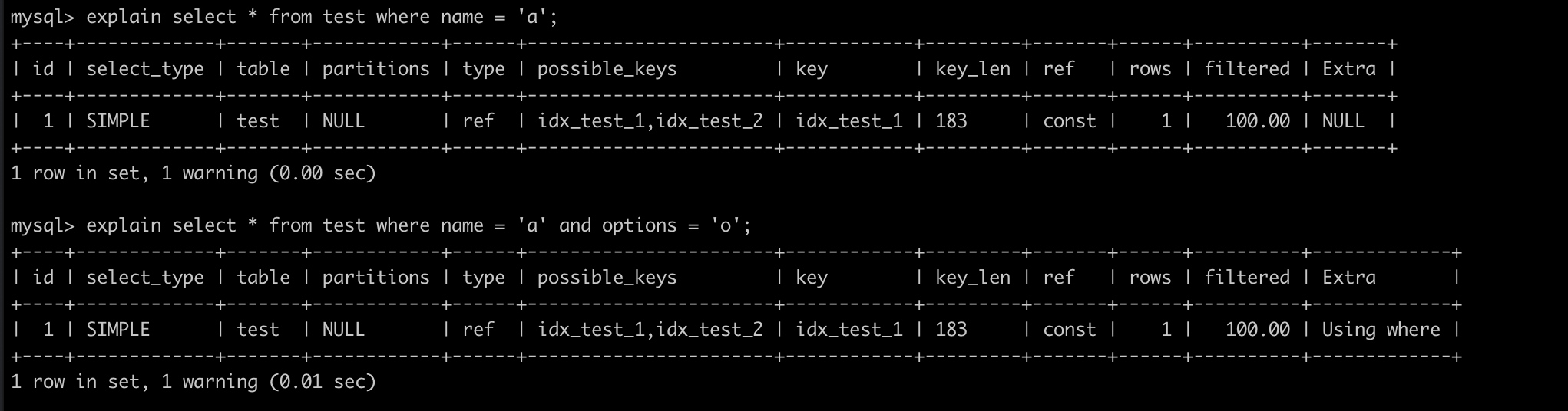 CREATE INDEX idx_test_2 ON test ( name, options );