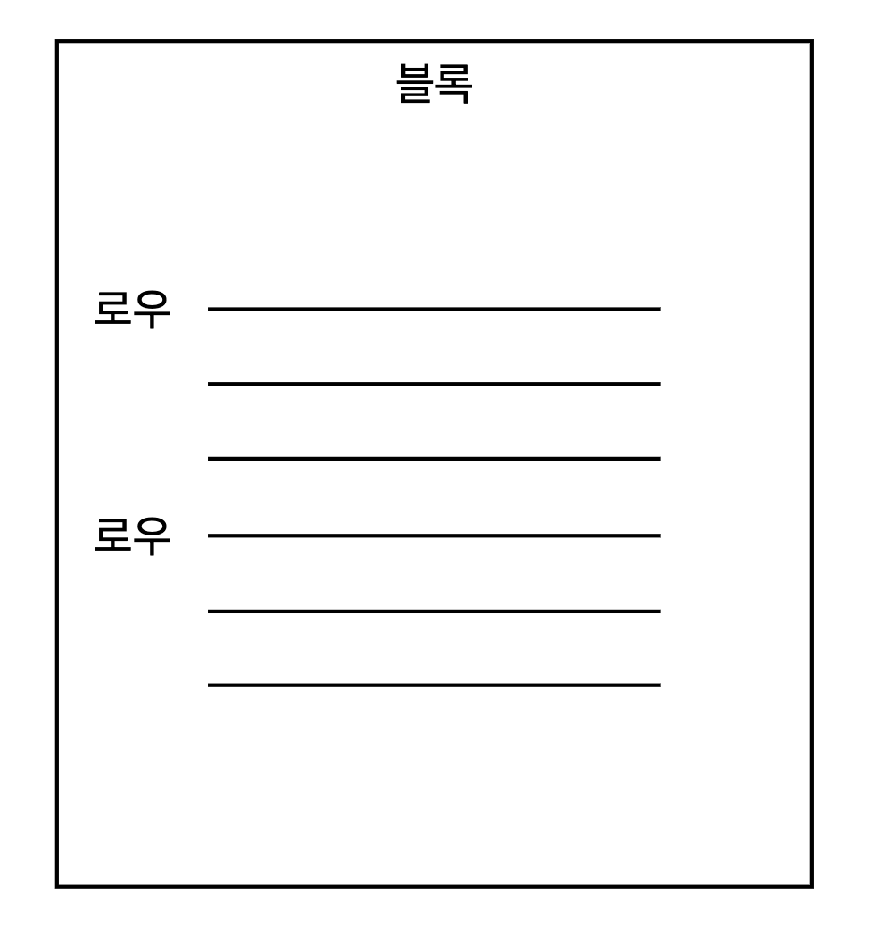 - 익스텐트는 단위로 공간을 확장하지만, 사용자가 입력한 레코드를 실제로 저장하는 공간은 블록이다. 한 블록은 하나의 테이블이 독점한다. 즉, 한 블록에 저장된 레코드는 모두 같은 테이블 레코드다.