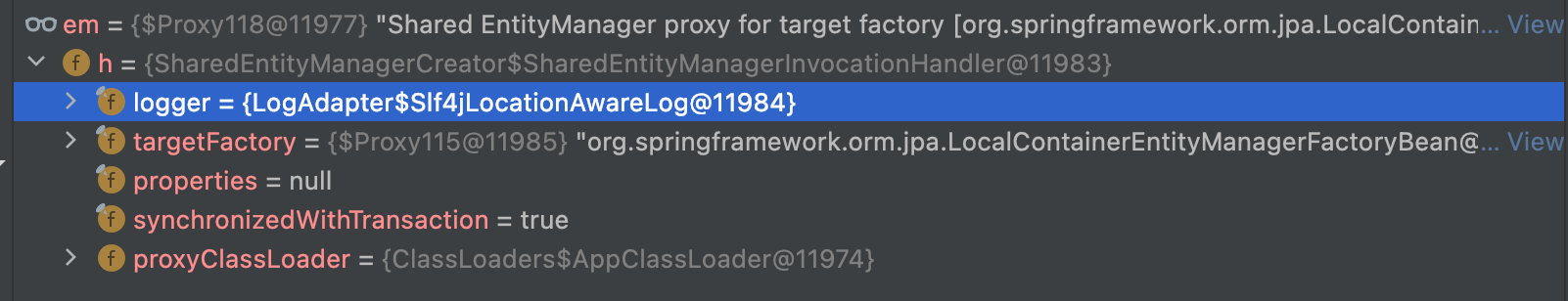 참고로 현재 targetFactory도 InvocationHandler지만 내부에 타겟은 LocalContainerEntityManagerFactoryBean 인스턴스다.