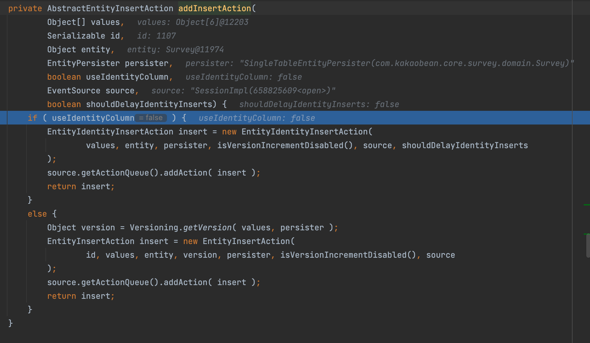 이후에 엔티티를 DB에 저장하기 위한 코드가 나온다. addInsertAction() 메서드를 살펴보겠다.