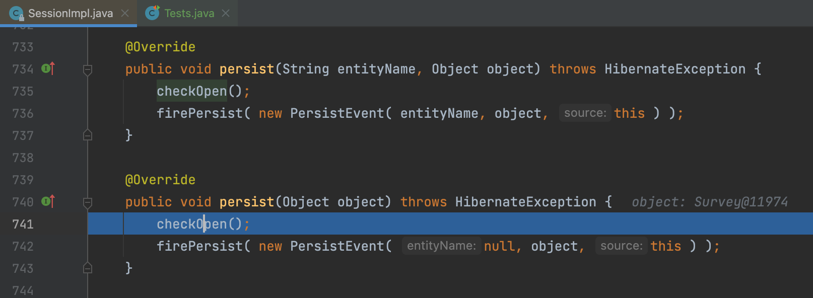 그럼 SessionImpl의 클래스의 persist 메서드에 도달한다.
