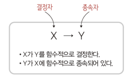 정규화 과정에서 고려해야 하는 속성들 간의 관련성을 함수적 종속성이라고 한다.