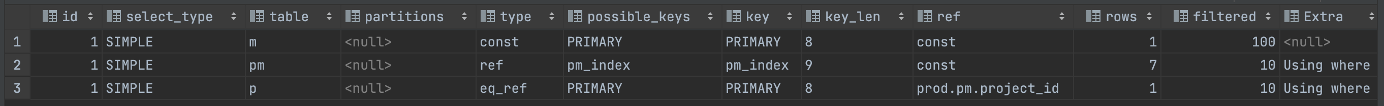 join project as p on p.id = pm.project_id