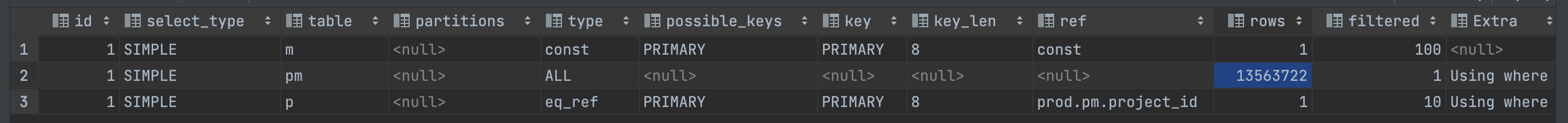 - project 테이블도 마찬가지로 pk인 id를 사용해 굉장히 빠르게 데이터를 찾는다.