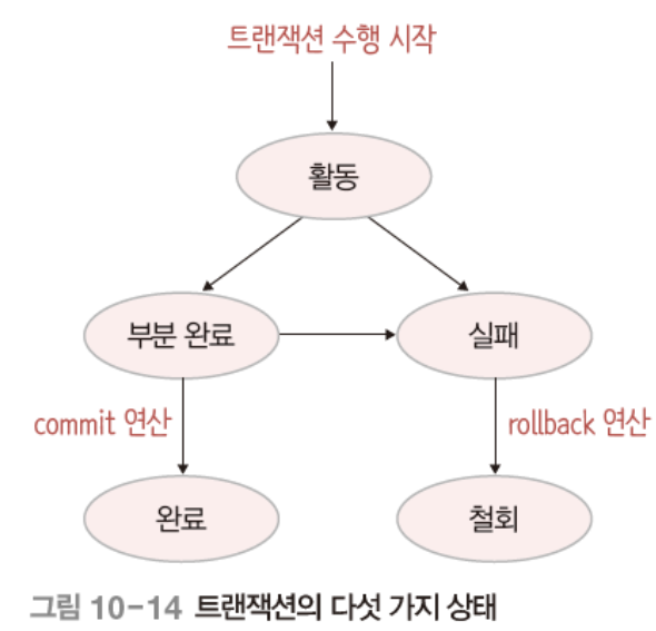 - 철회 상태: 트랜잭션의 수행 실패로 rollback 연산을 실행한 상태다.