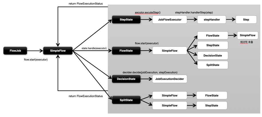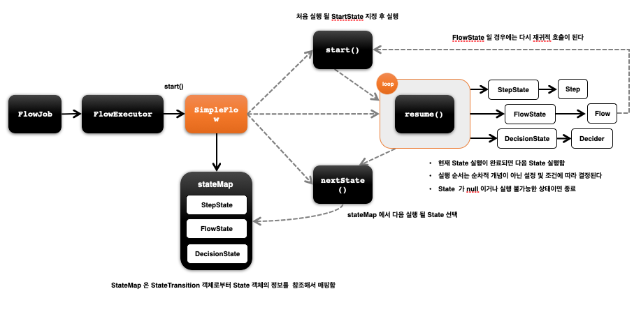 - 내부적으로 SimpleFlow 객체를 포함하고 있으며 Job 실행 시 호출한다.