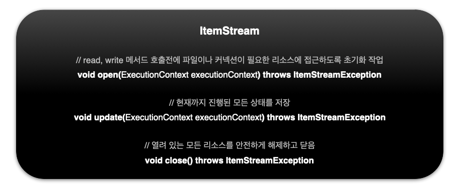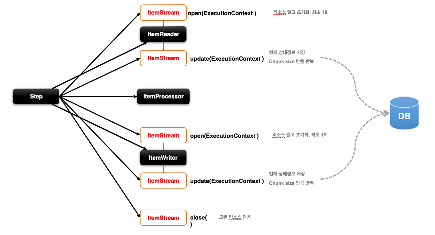 - ItemReader 및 ItemWriter는 ItemStream을 구현해야 한다.