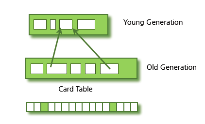이러한 경우를 처리하기 위해서 Old 영역에는 512바이트의 덩어리(chunk)로 되어 있는 카드 테이블(card table)이 존재한다.