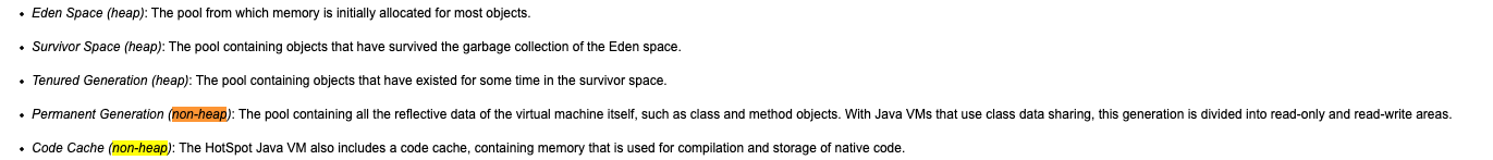 오라클 공식문서에서는 PermGen을 설명하면서 non-heap이라고 적어놓았다.