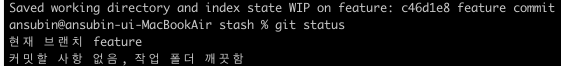 이제 원래의 feature 브랜치로 돌아가 stash를 불러오자.