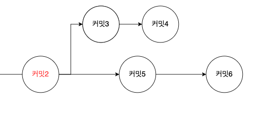 - 기존 베이스 커밋2에서 커밋6으로 베이스 기준점을 변경한다.