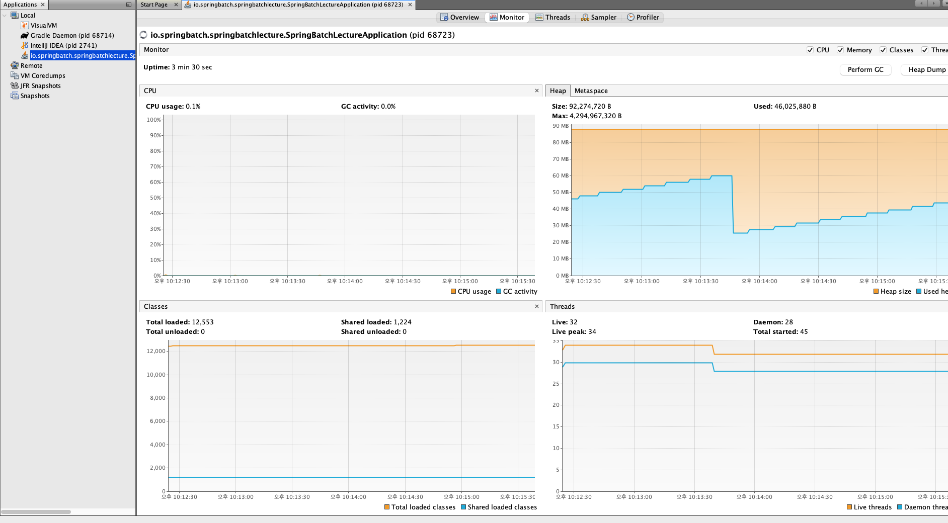 간단하게 스프링 부트로 웹서버를 띄우고 VisualVm을 사용해보겠다.