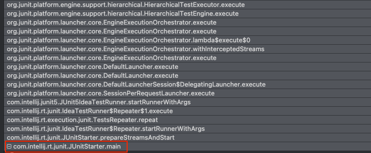 그럼 com.intellij.rt.junit.JunitStarter.main 메서드가 제일 먼저 실행된다.
