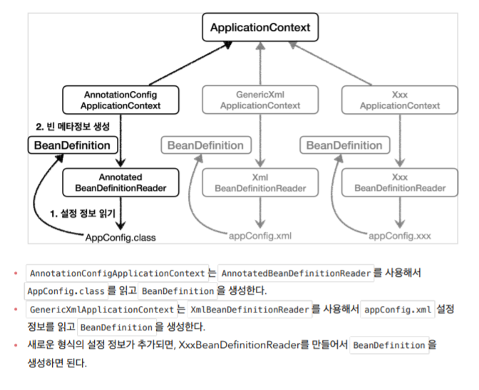 BeanDefinition에 대해서는 너무 깊이 있게 이해하기보다는, 스프링이 다양한 형태의 설정 정보를 BeanDefinition으로 추상화해서 사용하는 것 정도만 이해하면 된다.