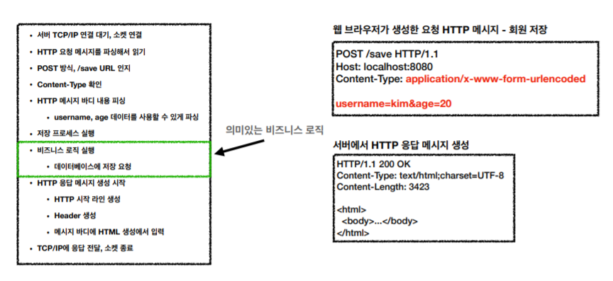 - 개발자는 Request 객체에서 HTTP 요청 정보를 편리하게 꺼내서 사용한다.